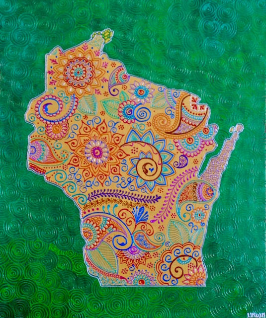 High Quality Photo print of Henna style textured Wisconsin State Painting.