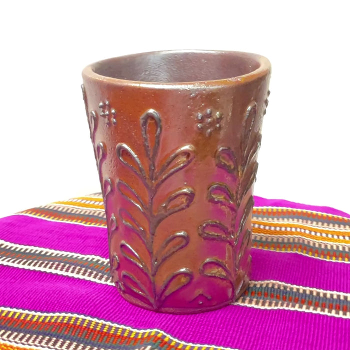 One of a kind, slab built, textured ceramic tumbler with a henna pattern. Holds ~16 oz.